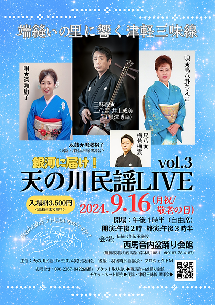 主催:天の川民謡LIVE2024実行委員会 (髙橋 TEL:090-2367-8422)